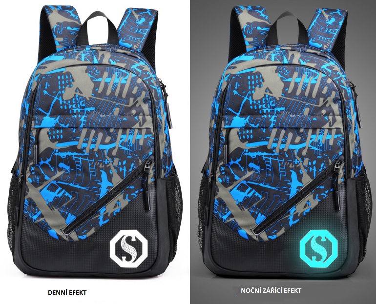 • logo que brilla en la oscuridad en la parte trasera de la mochila