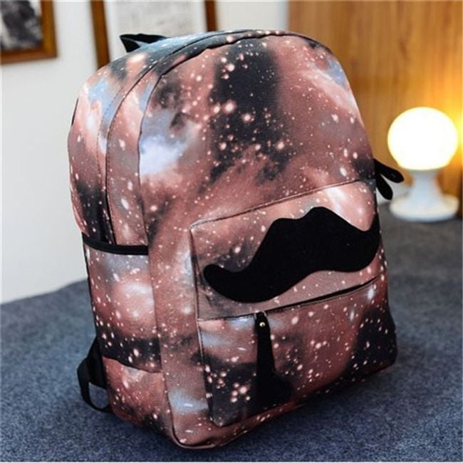 La mochila escolar está decorada con un estampado de bigote. Elige entre 4 colores.