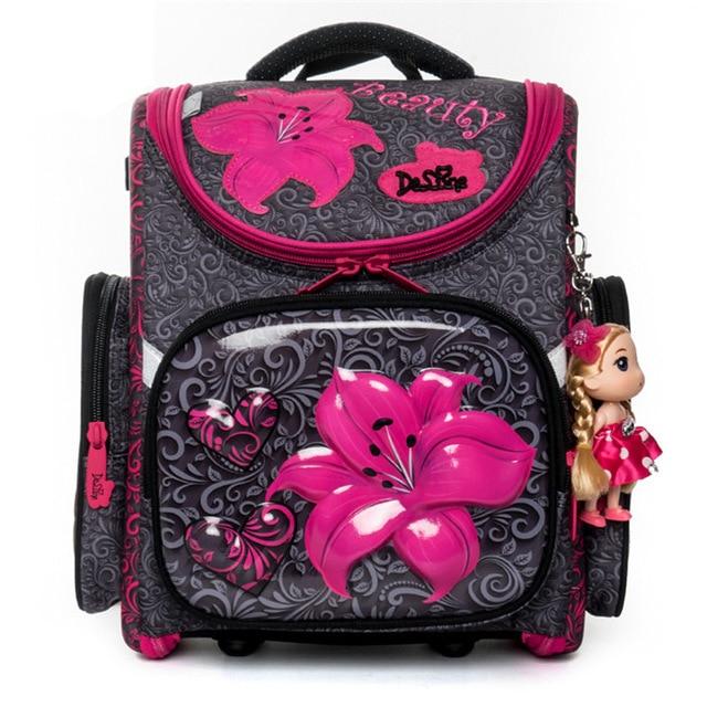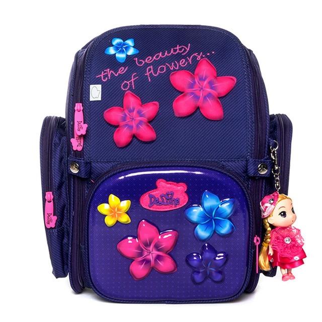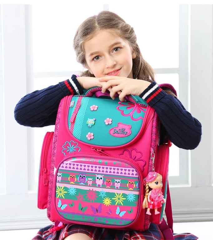 Mochila escolar con flores y otros patrones.