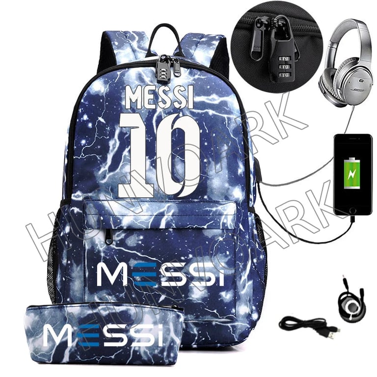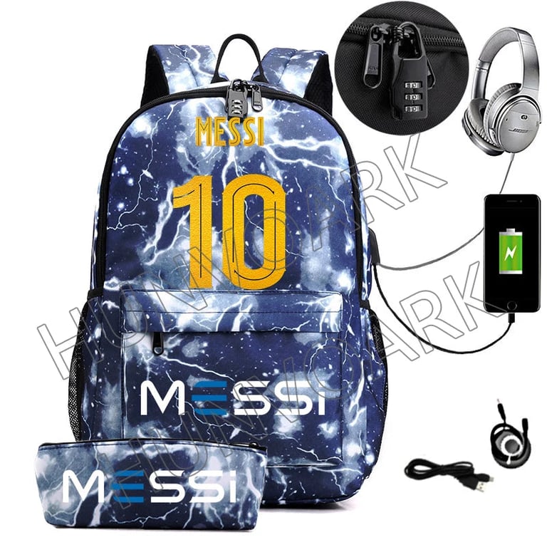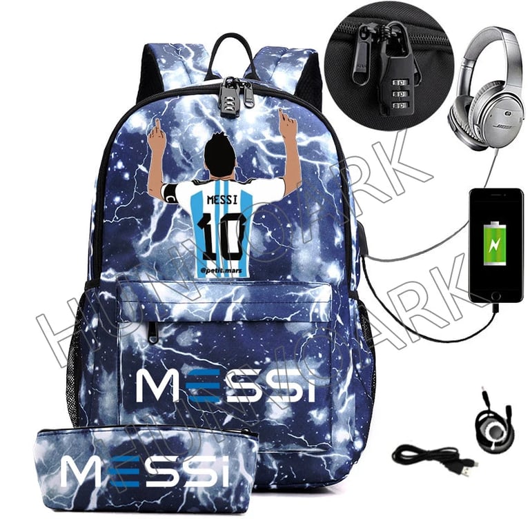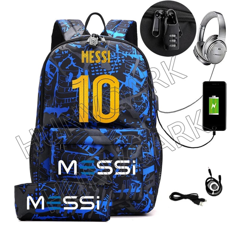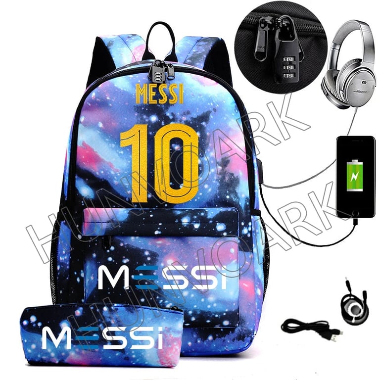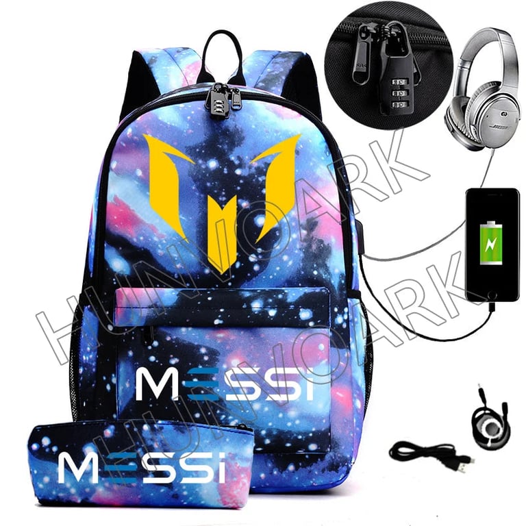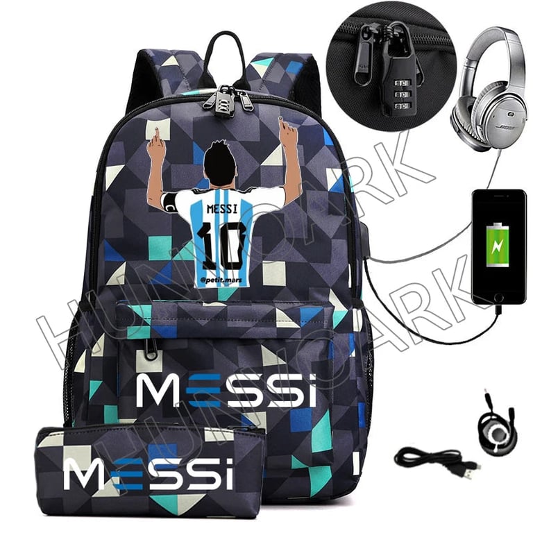 Mochila escolar de diseño y estuche de Lionel Messi - más variantes.