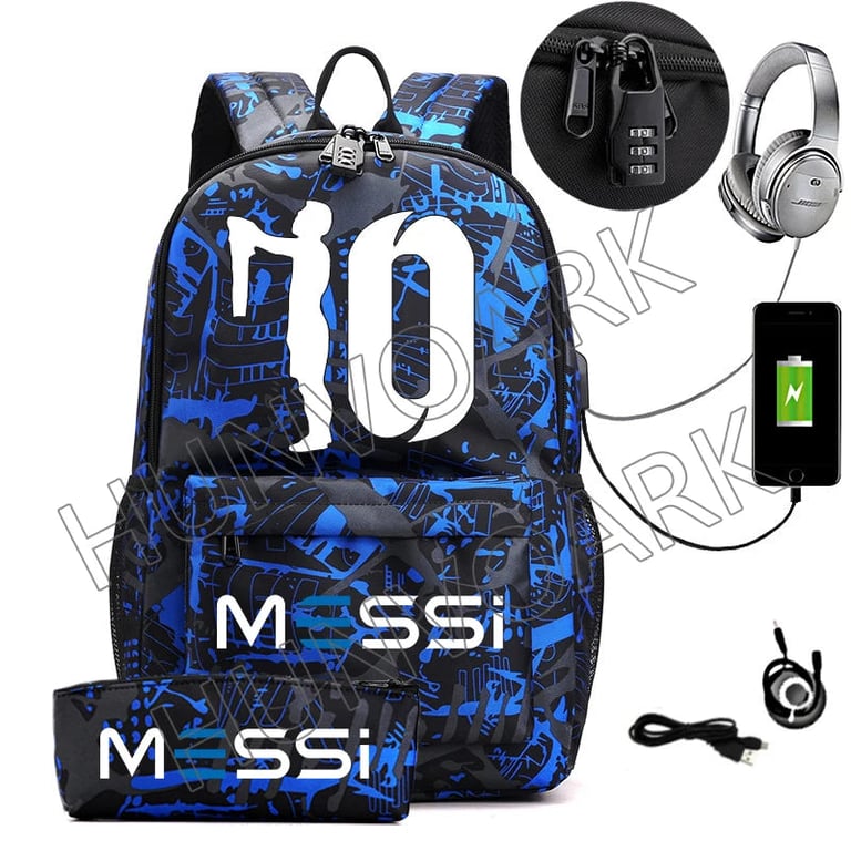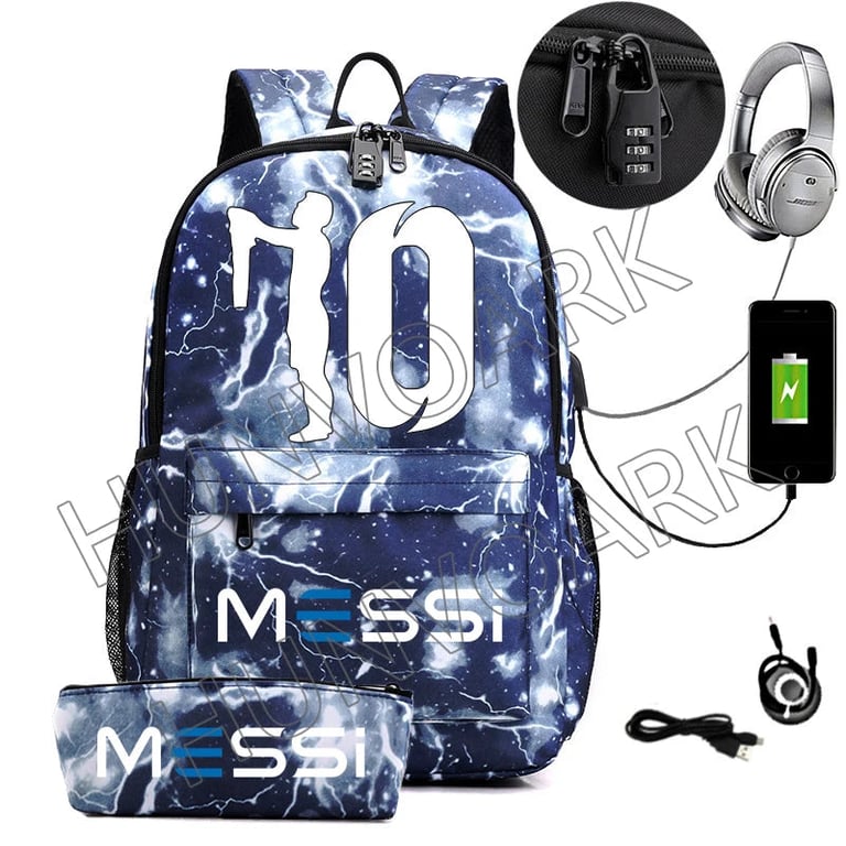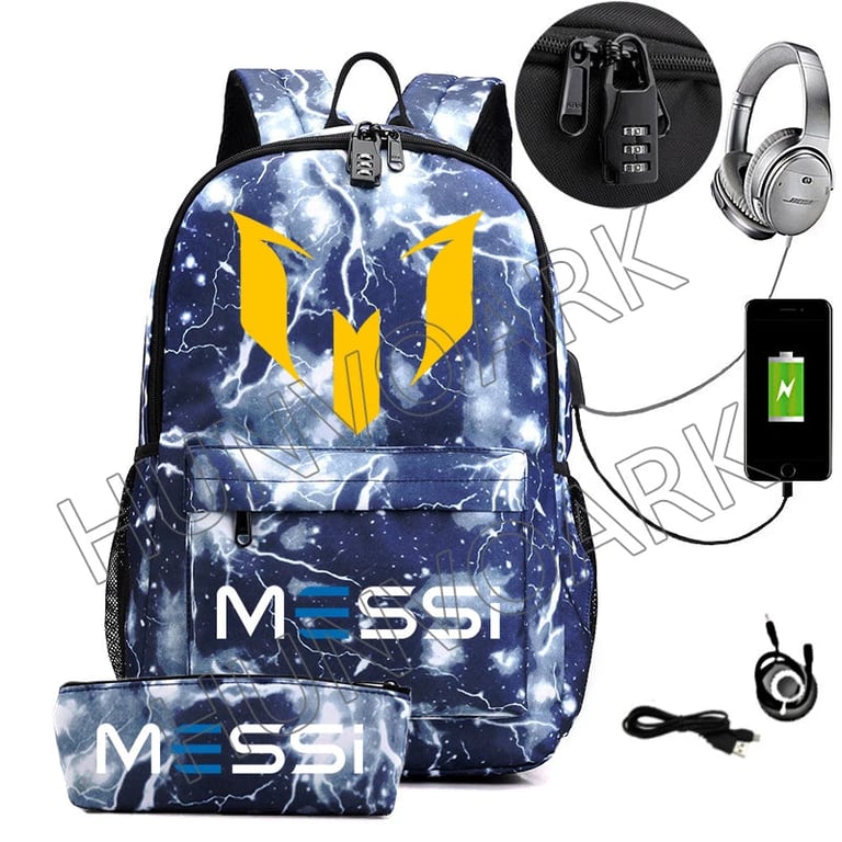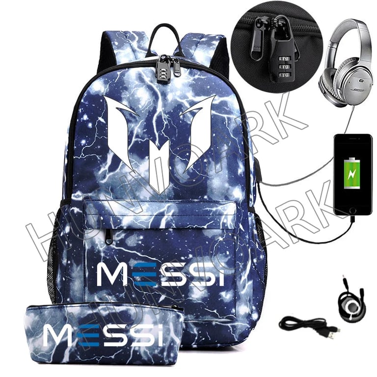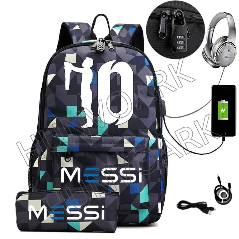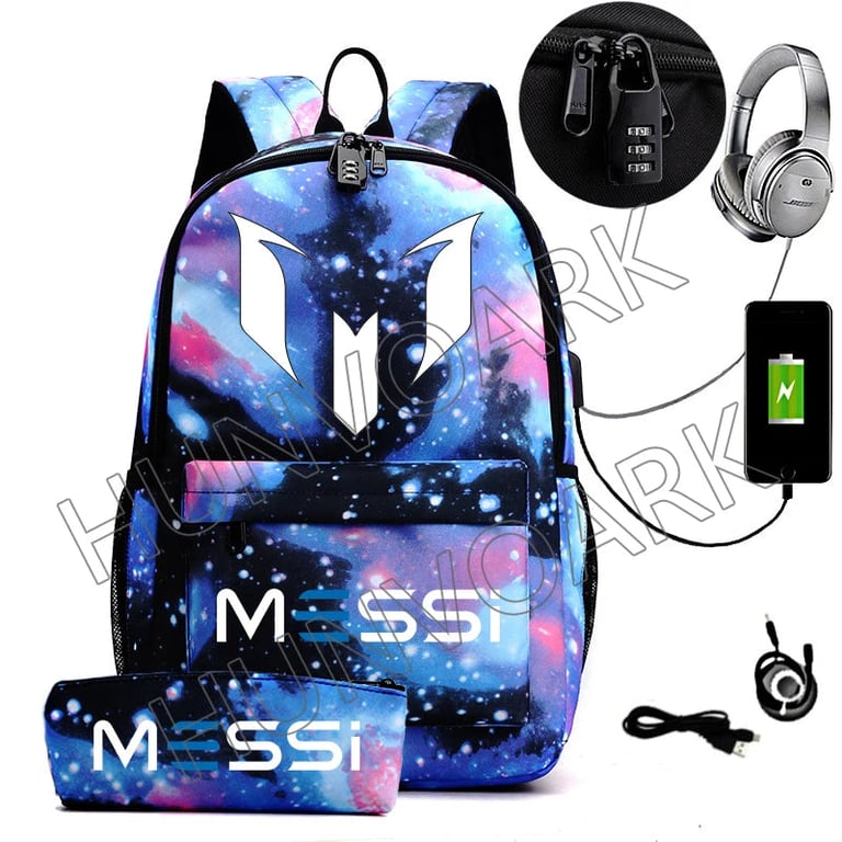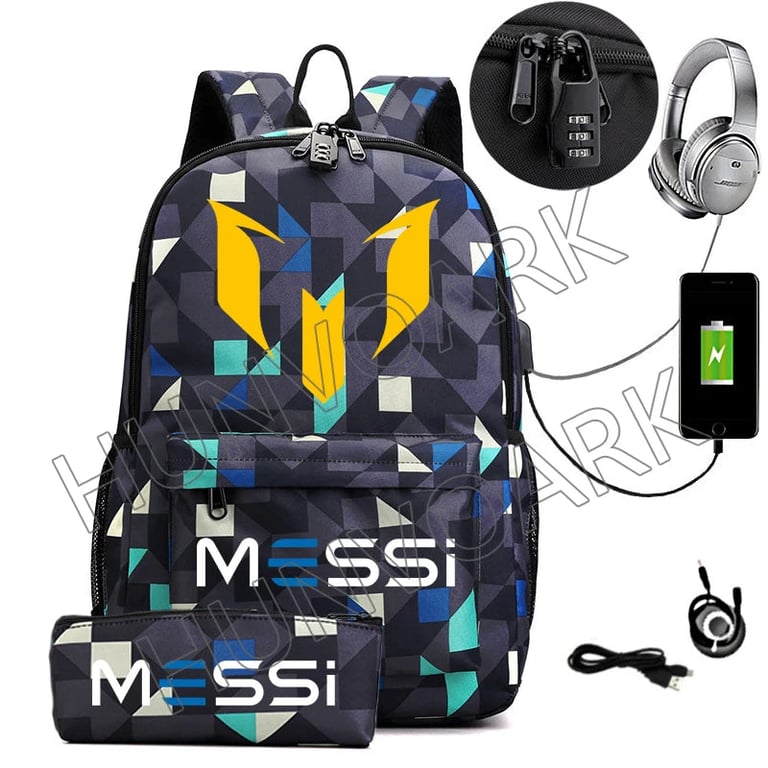 Mochila escolar de diseño y estuche de Lionel Messi - más variantes.