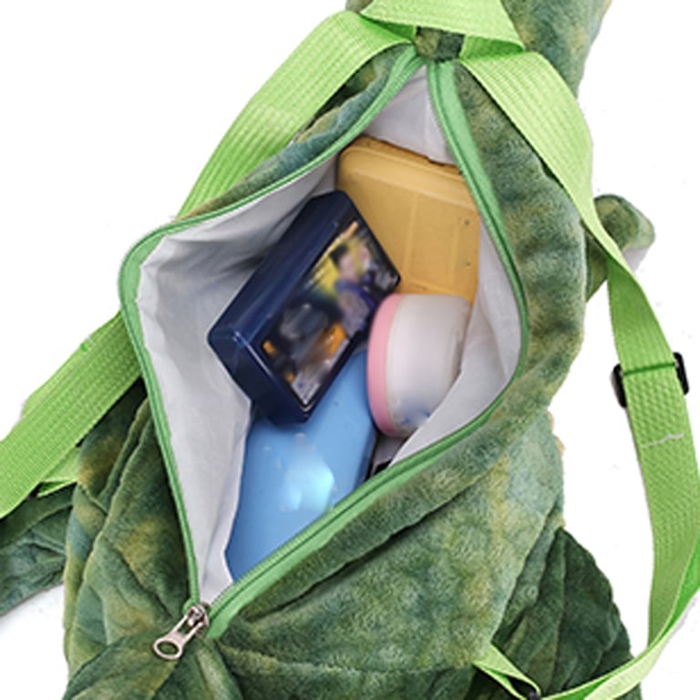 El dinosaurio está hecho de un agradable material de felpa y tiene correas ajustables.