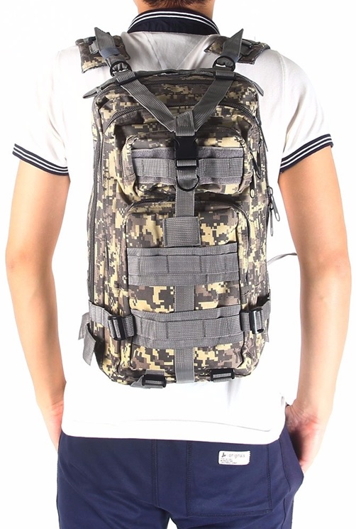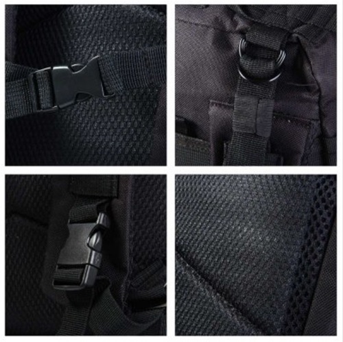 La mochila táctica está hecha de un material resistente. Muy espacioso, el compartimento principal de la mochila cuenta con un bolsillo interior con cremallera. El compartimento medio de la mochila tiene un bolsillo interior de malla.