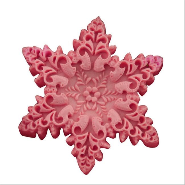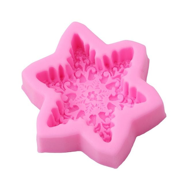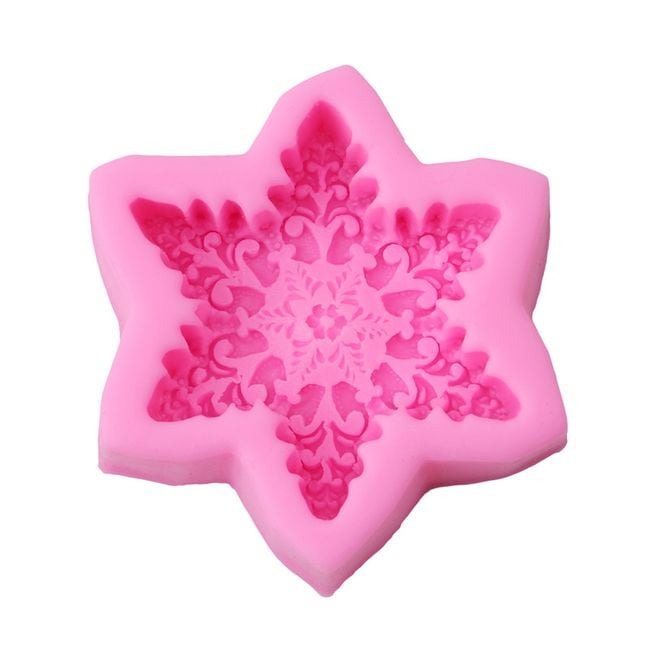 El molde de silicona tiene forma de copo de nieve. Disponible en color rosa.