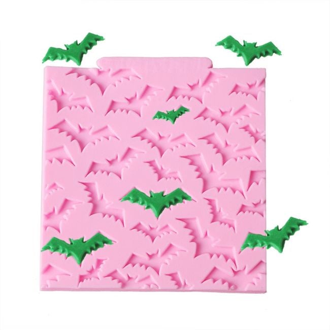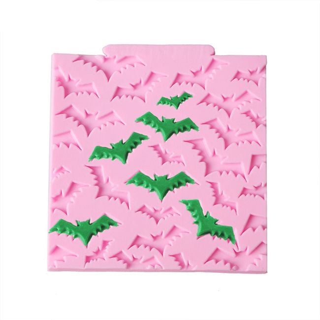 Molde de silicona para fondant en forma de murciélagos de Halloween.