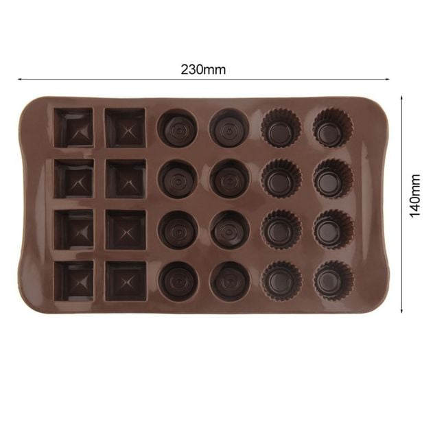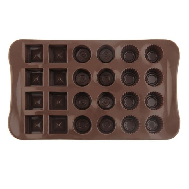 El molde tiene 24 agujeros para bombones o dulces.