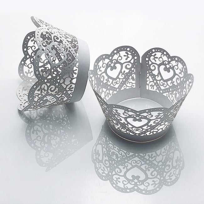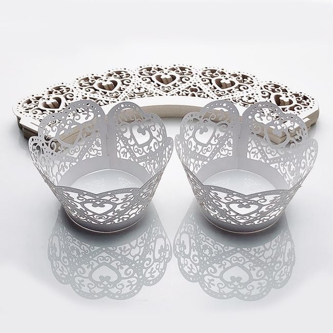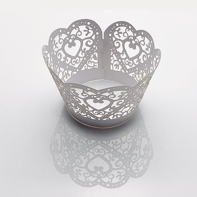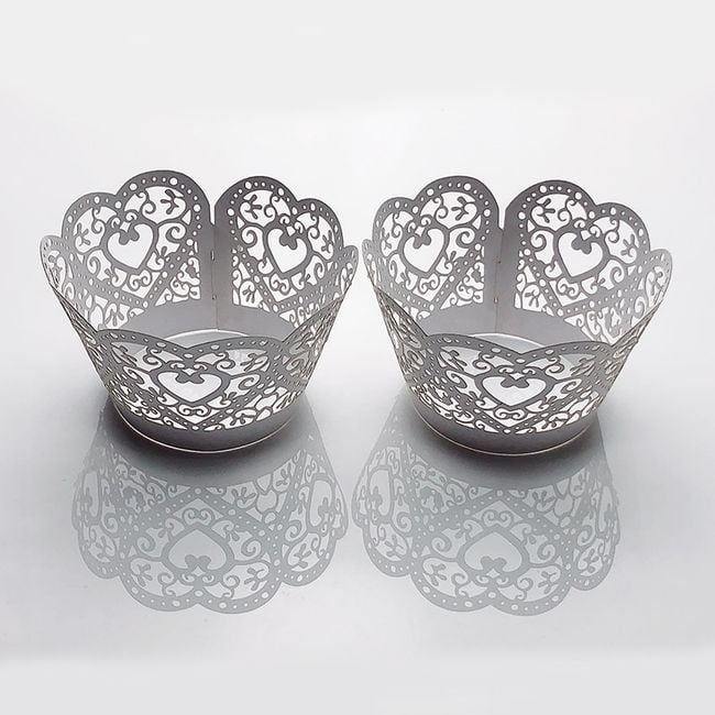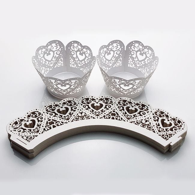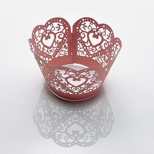 Elegante cesta decorativa para cupcakes con corazones en varias opciones de color.