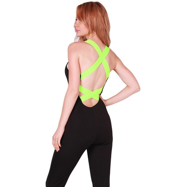 El mono deportivo ajustado cuenta con una espalda descubierta con un patrón cruzado. Está disponible en 4 colores.