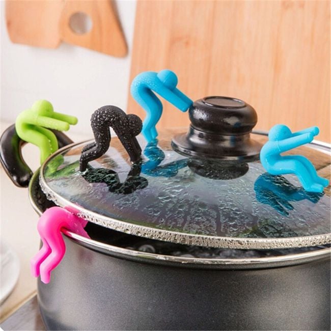 ¡Estos pequeños son realmente serviciales! Aunque podría parecer que preferirían lanzarse a una olla hirviendo, en realidad te ayudarán a levantar la tapa con suavidad. Están hechos de silicona resistente y no tóxica. Puedes elegir entre varias opciones de colores. Los vendemos siempre en pares, porque en dos es más fácil.