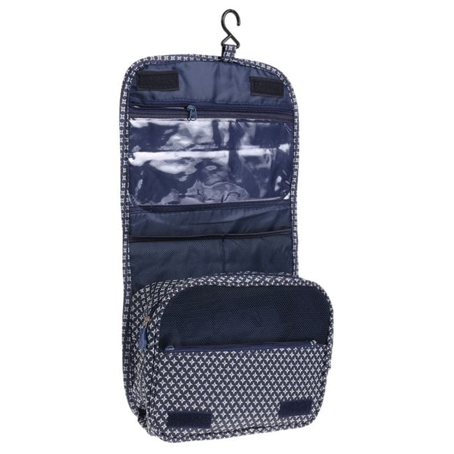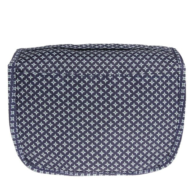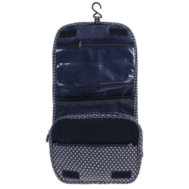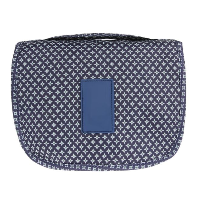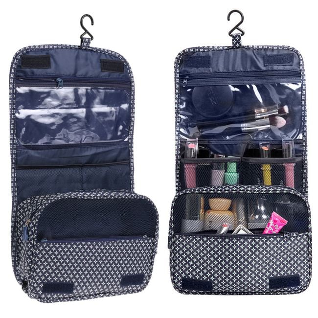 Neceser de maquillaje colgante desplegable en color azul.
