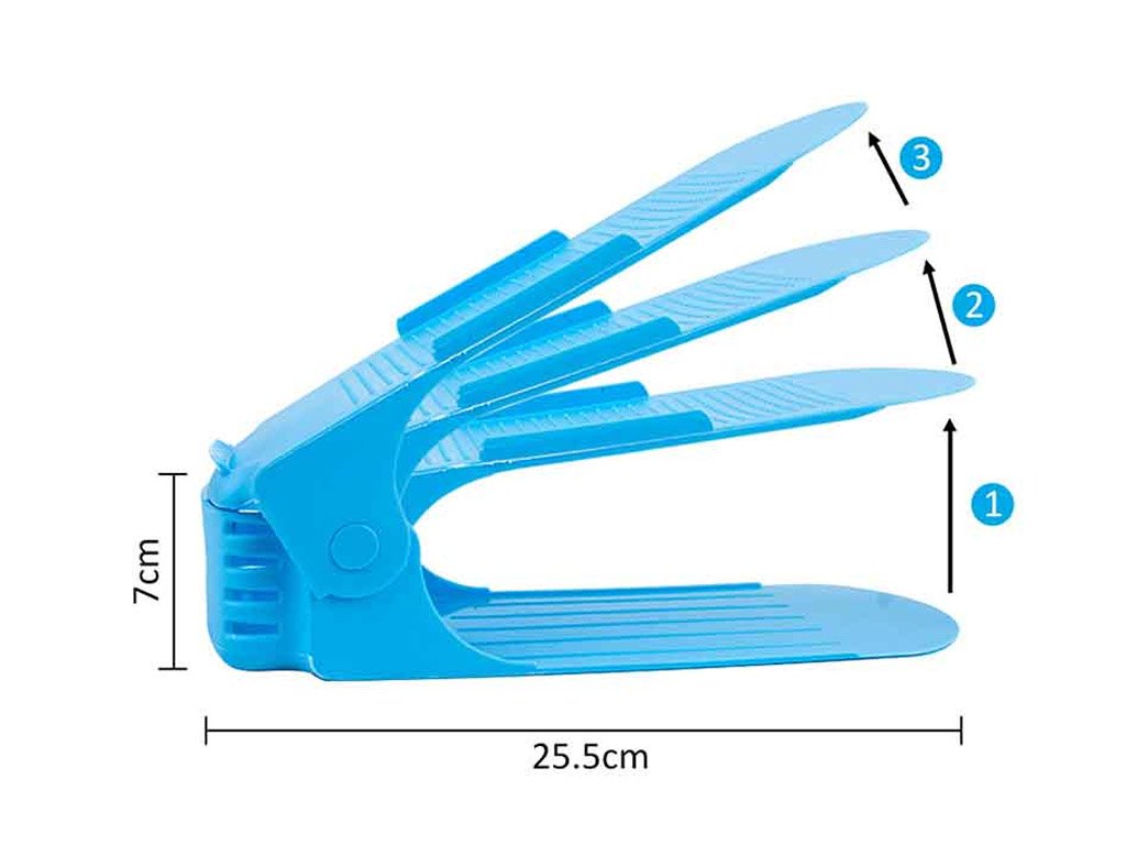 Consiga un 100% más de espacio en su zapatero gracias al soporte para zapatos. Puede colocar los pares de zapatos uno al lado del otro o ordenadamente uno encima del otro con esta solución inteligente.