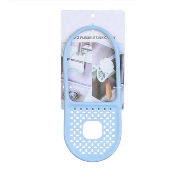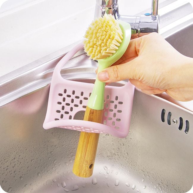 Gracias a los agujeros en la parte inferior, el agua (por ejemplo, de la esponja de cocina) puede drenar inmediatamente, permitiendo que el objeto almacenado se seque fácilmente. Es flexible: puedes colgarlo en el grifo al borde del fregadero y similar. Es una solución excelente para almacenar pequeños objetos en la cocina y el baño, como jabón, esponjas o cepillos de dientes.