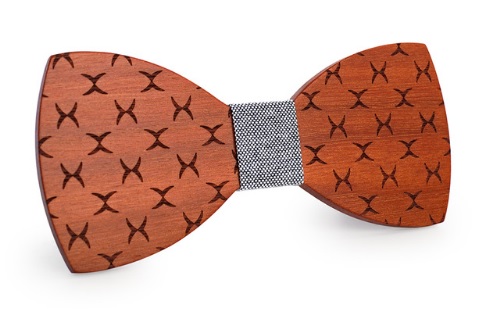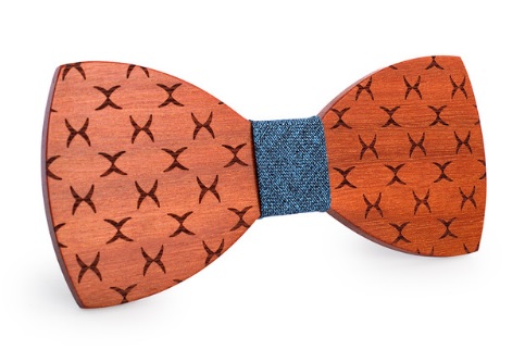 Un original pajarita de madera en combinación de madera y textil.