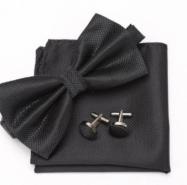 Contenido del paquete: 1x pajarita, 1x pañuelo, 2x gemelo