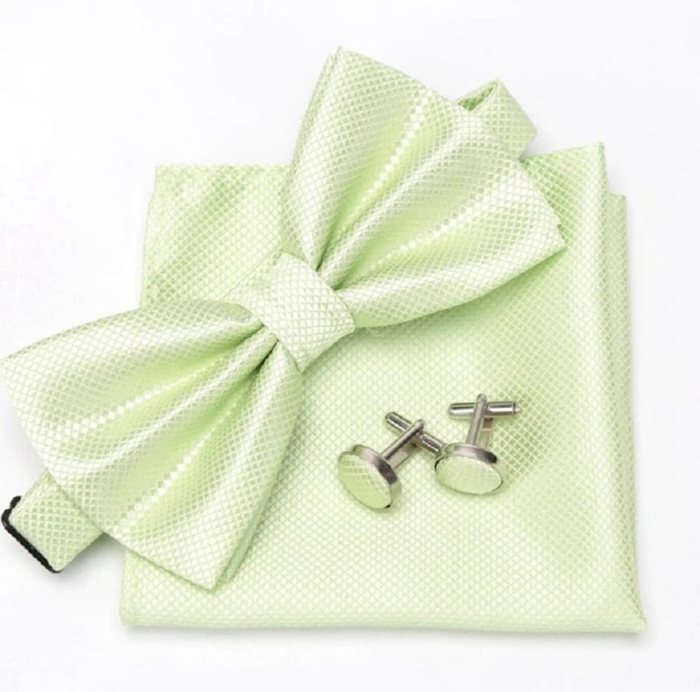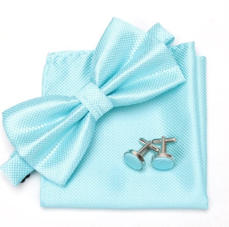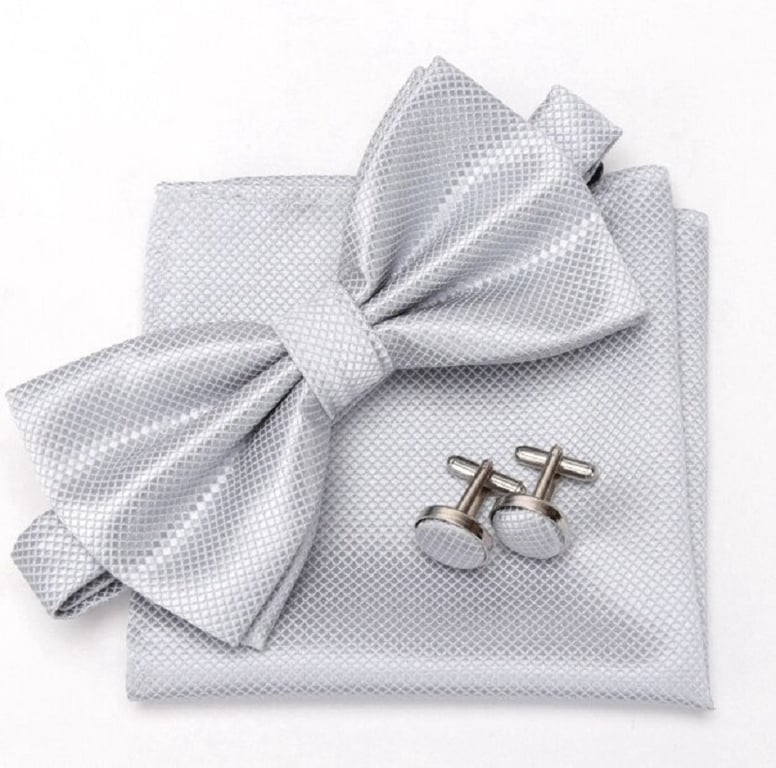 Pajarita para hombre, pañuelo y gemelos