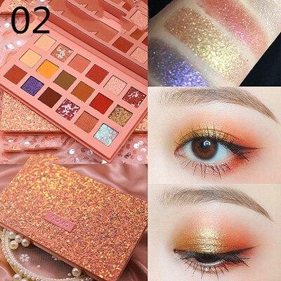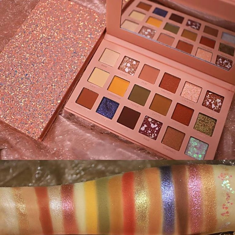 Paleta de sombras de ojos. La paleta contiene 18 sombras. En la paleta hay sombras mate y brillantes.