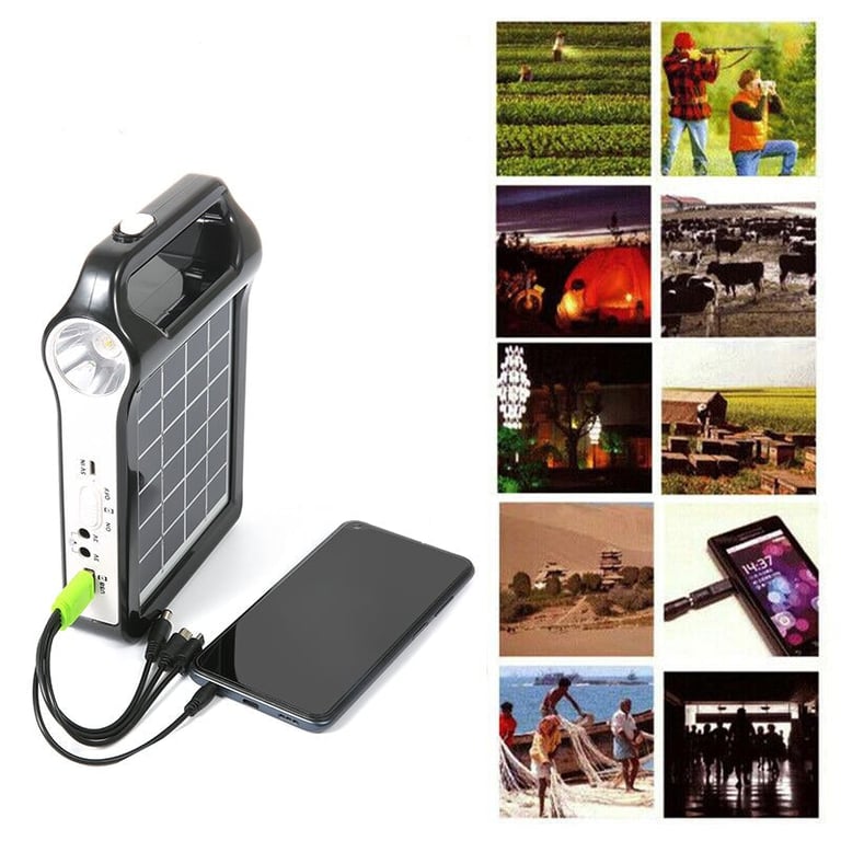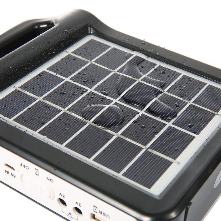 Panel solar portátil de carga con luz LED.