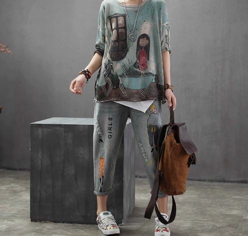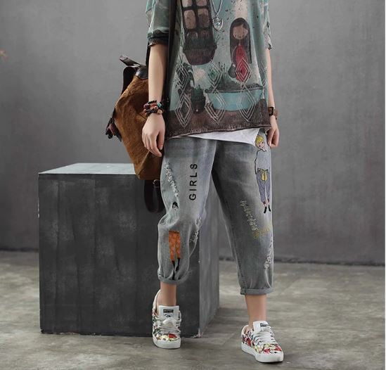 Pantalones boyfriend de mujer de corte oversize en color gris.