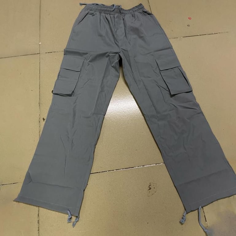 • Pantalones cargo largos modernos para hombre con bolsillos laterales en las piernas.