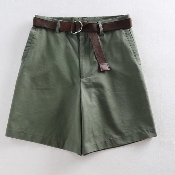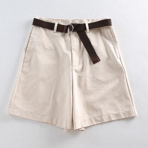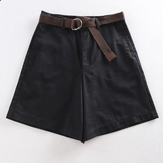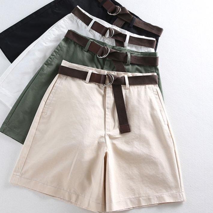 Shorts de mujer con cintura alta. Como complemento, se incluye un cinturón con los shorts. Fabricado de algodón y poliéster.