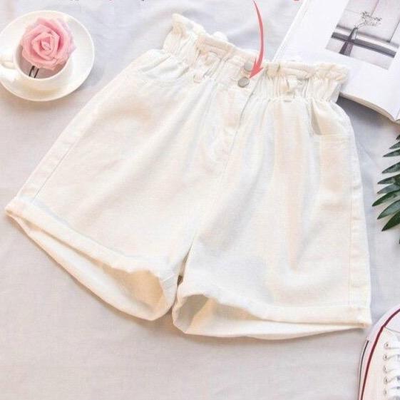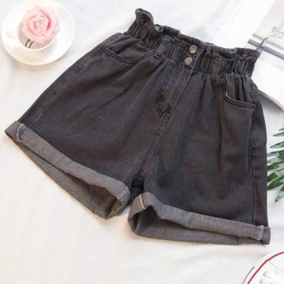 Shorts de mezclilla de cintura alta. Disponible en color gris, blanco y azul.