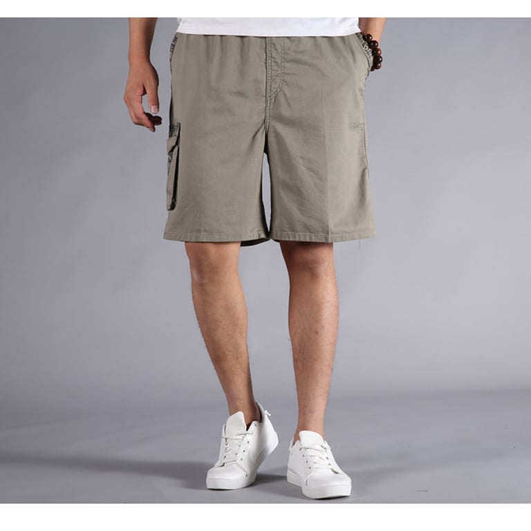 Shorts para hombre con bolsillos laterales y traseros. Cintura elástica con goma. Tallas grandes disponibles. Disponible en varias opciones de color.