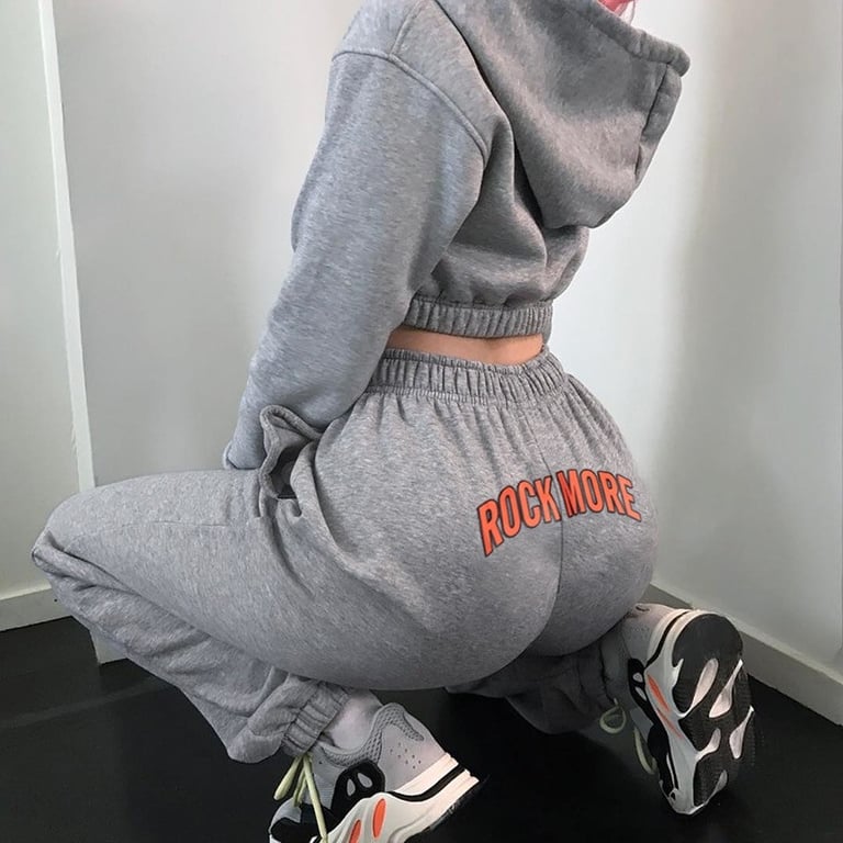 Pantalones de chándal grises para mujer con inscripción