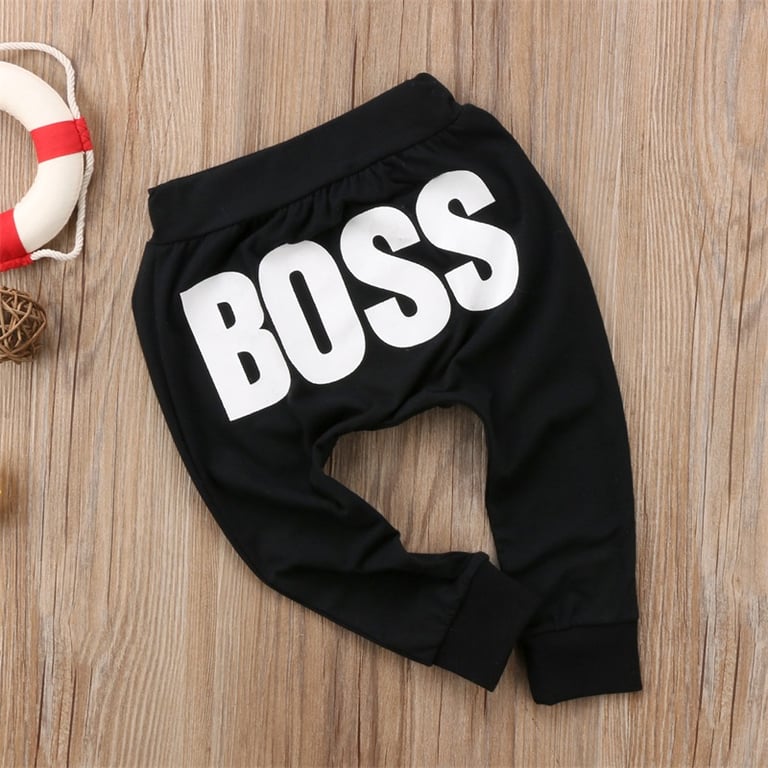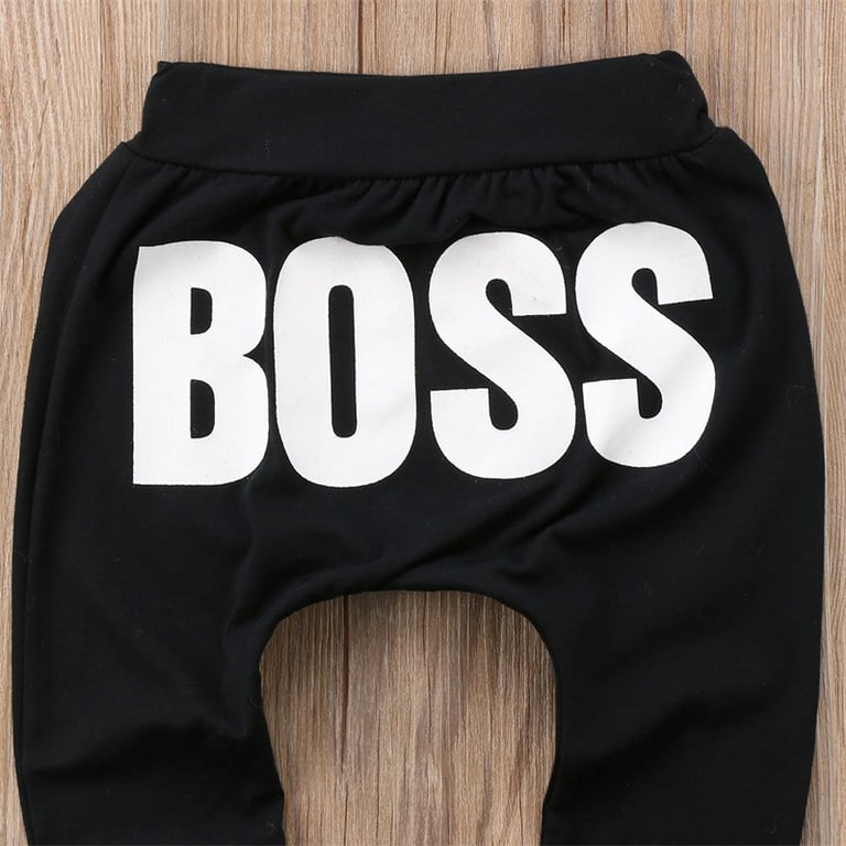 Pantalones de niño adorables con estampado BOSS en la parte trasera para pequeños jefes.