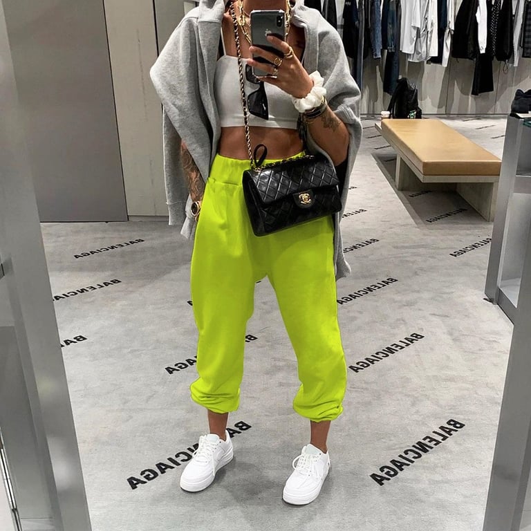 Pantalones de chándal verdes para mujer con inscripción.