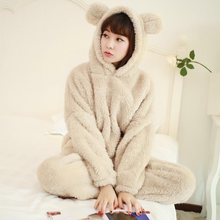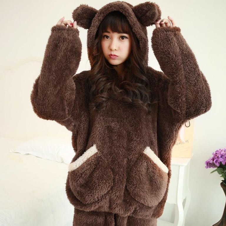 Pantalones de pijama de felpa y sudadera con orejas