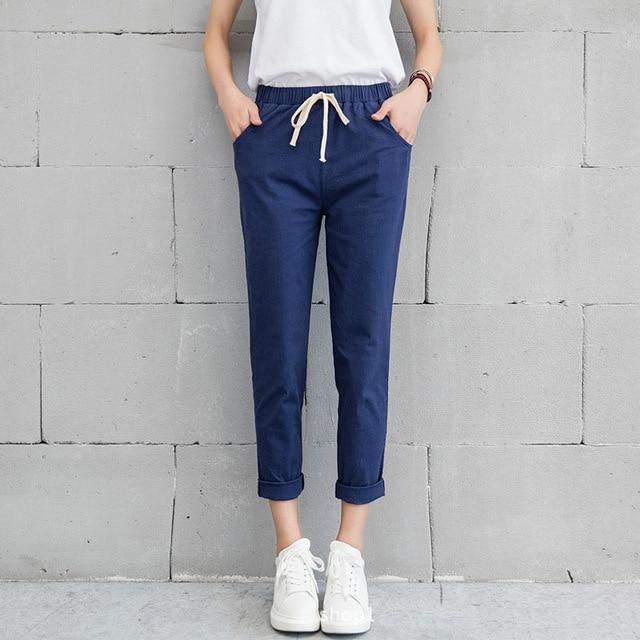 Pantalones de verano sencillos y transpirables con cintura elástica y ajuste mediante cordón de contraste.