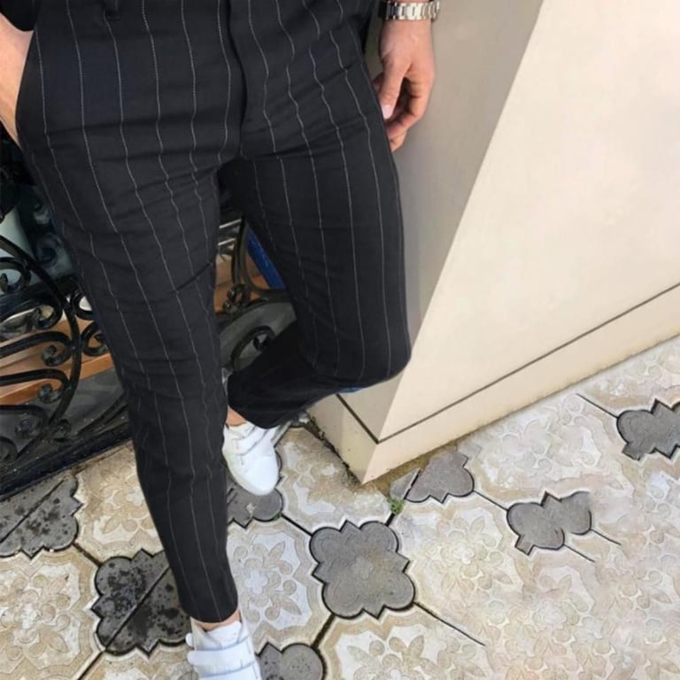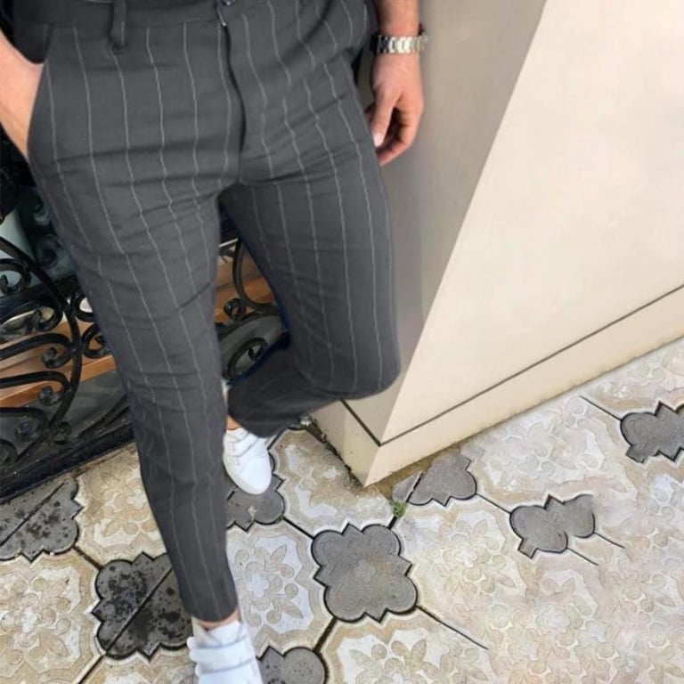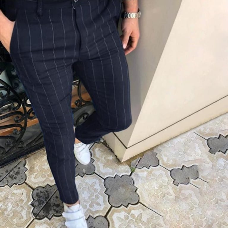 Los pantalones de vestir a rayas son muy modernos y a la moda.