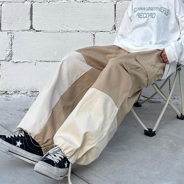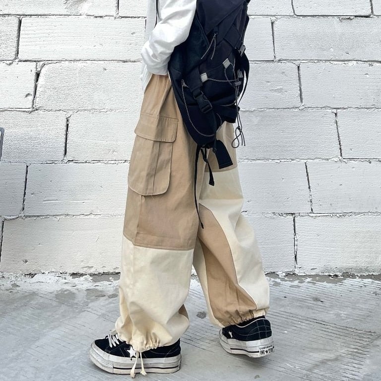 Pantalones baggy elegantes con cordón en el final de la pierna para ajustar su ancho.