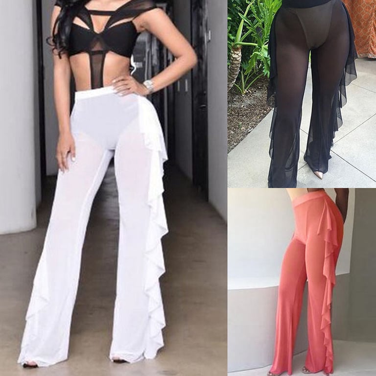 • Etiquetas: Pantalones de mujer, pantalones de playa, de cintura alta, transparentes, para baño, con volantes, largos, anchos, ajustados