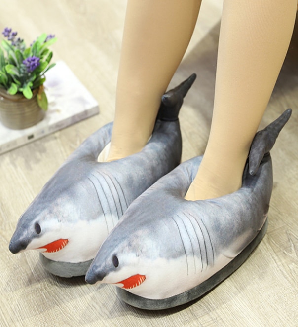 Preciosas zapatillas cálidas con un diseño de pez o tiburón. Si no quieres andar en casa con calcetines y tienes el suelo frío, estas zapatillas son para ti. Encantarán a tus visitas y son agradables al tacto.