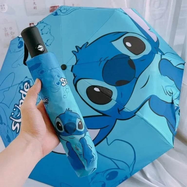 Paraguas infantil automático con el motivo de Stitch de la película de Disney Lilo & Stitch, es un complemento práctico y divertido tanto para los días de lluvia como de sol. El paraguas es plegable, ligero y, gracias al mecanismo automático, fácil de manejar incluso para los niños. Su alegre diseño azul con la gran cara de Stitch encantará a cualquier pequeño fan de los personajes animados.
