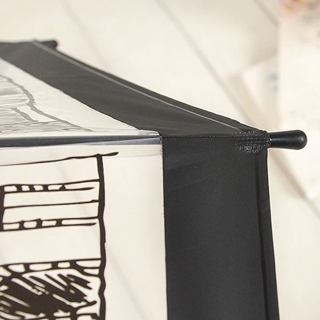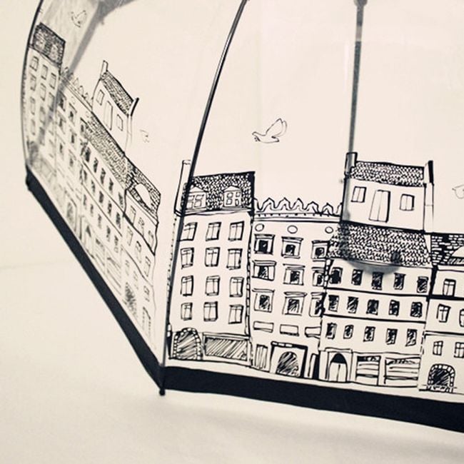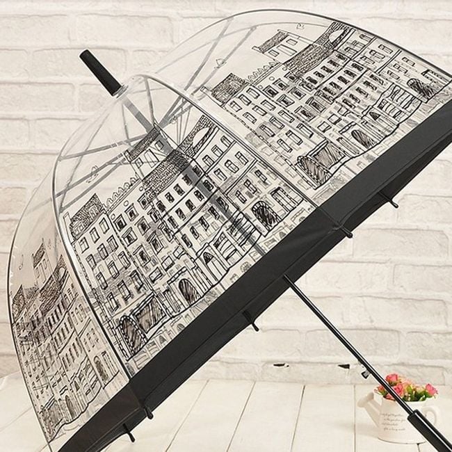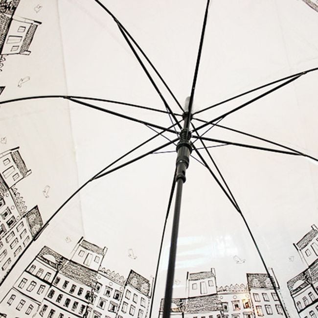 Sombrilla transparente y estilosa con varios estampados interesantes.