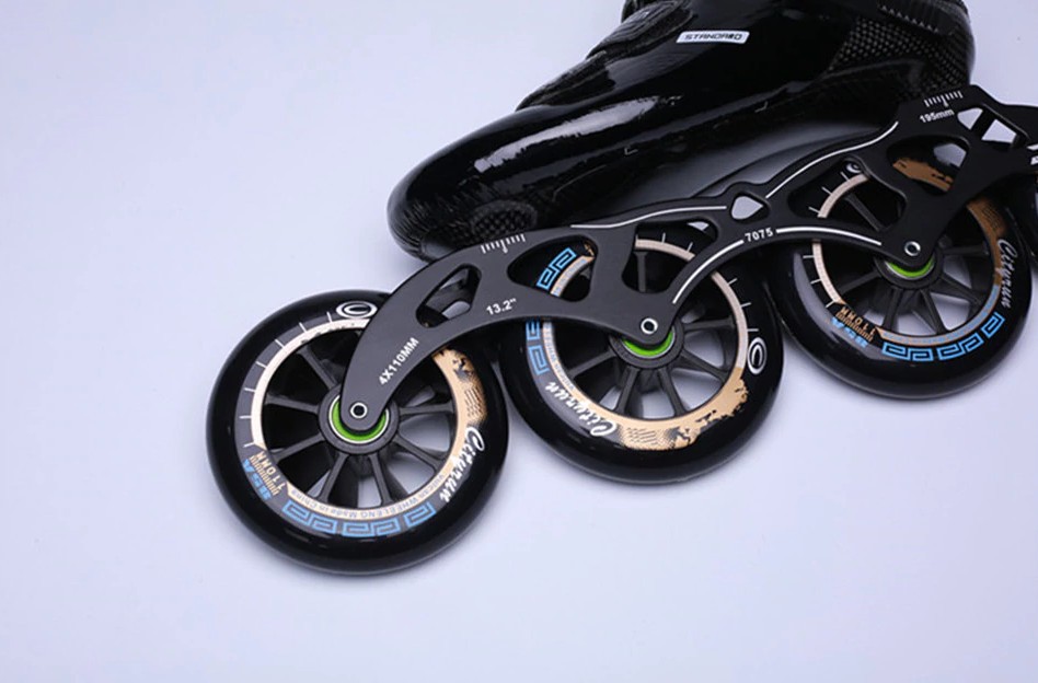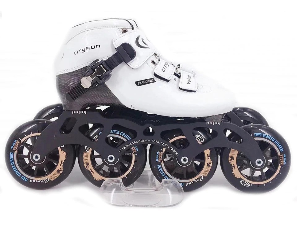 Estos patines de velocidad con grandes ruedas están diseñados para el patinaje de velocidad.
