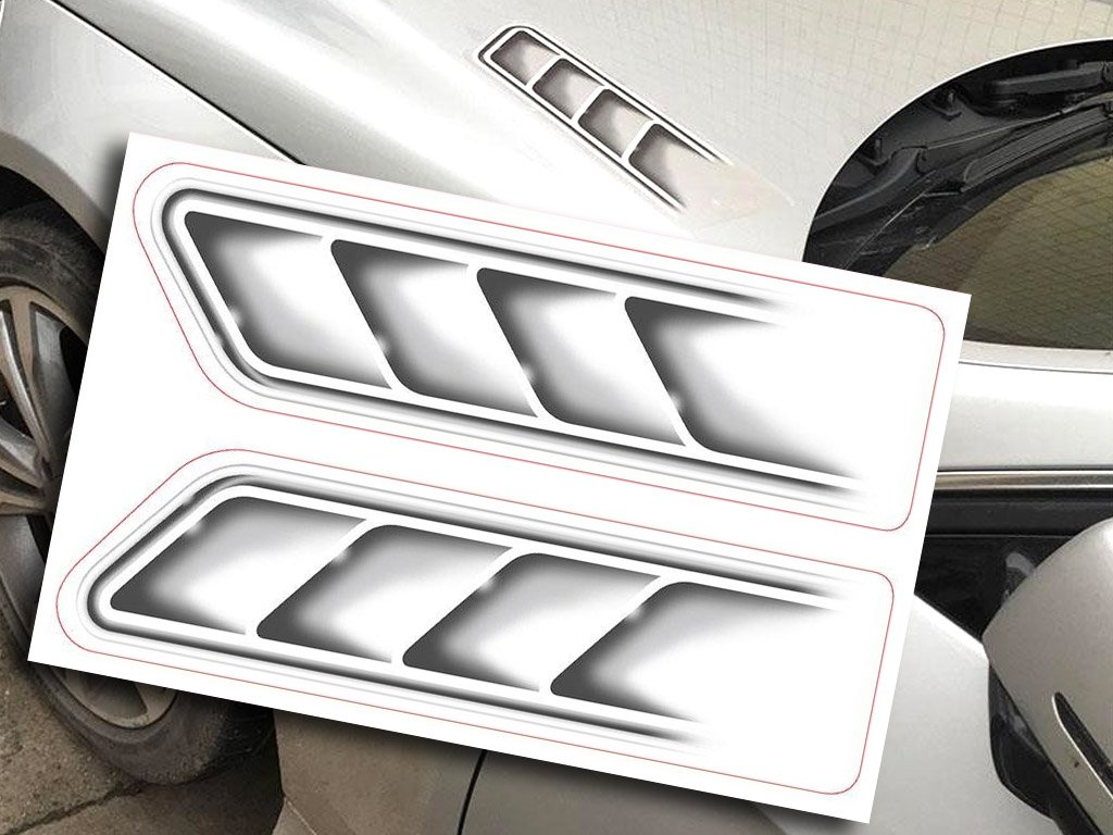 Las pegatinas de las salidas de aire complementarán el aspecto de su coche. Recomendamos colocarlas en el capó delantero o en los laterales de las puertas. Las pegatinas de las salidas de aire se colocan de forma espejo en ambos lados del coche. El paquete contiene 2 pegatinas.