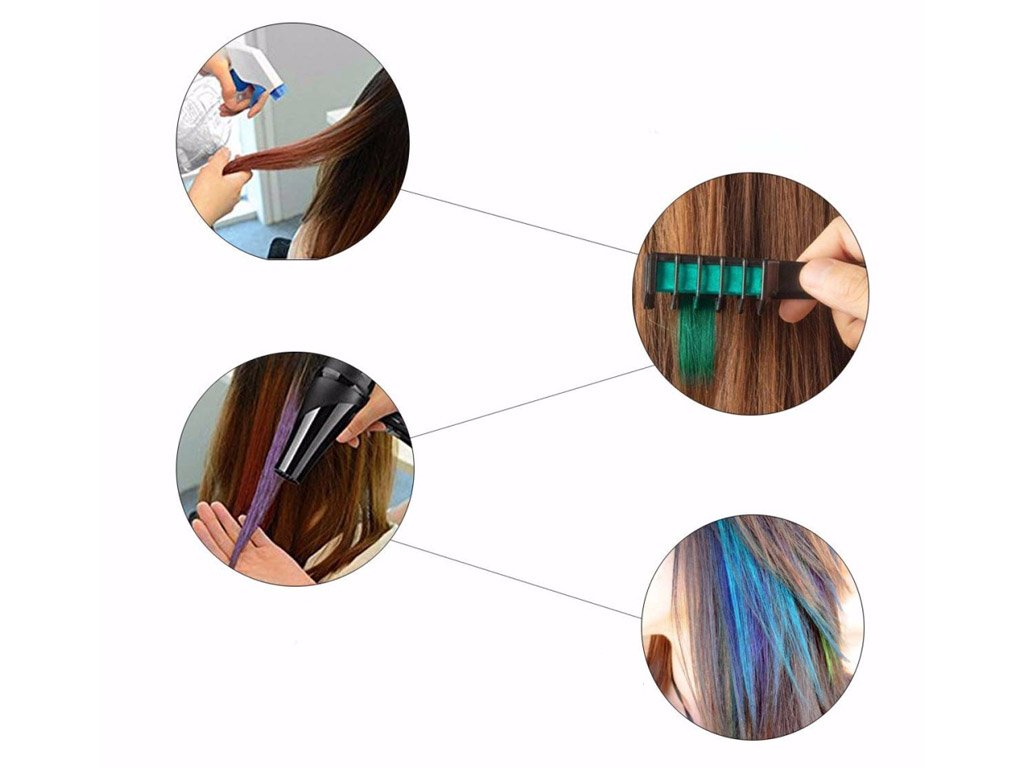 Con este peine, puedes teñir temporalmente tu cabello de manera fácil. Aplica el color de tiza con el peine sobre el cabello húmedo y sécalo con el secador. ¡Deslumbra con una imagen original en fiestas y festivales!