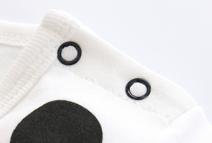 • Con mangas cortas y perneras, con escote redondo al cuello, abotonado con snaps.