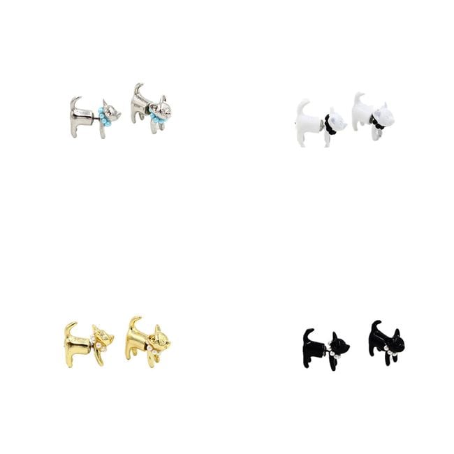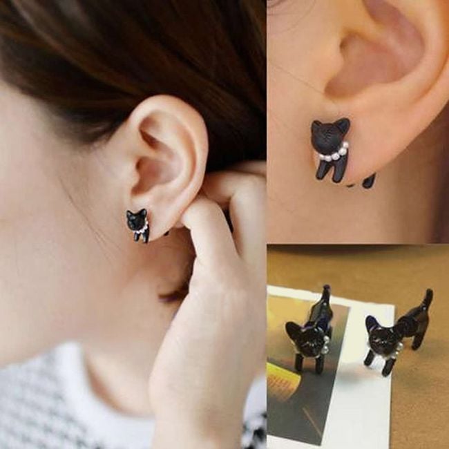 Estos pendientes en forma de gato seguramente llamarán la atención. El pendiente está dividido en dos partes. La parte delantera está formada por el hocico del gato y la parte trasera está formada por el cuerpo. Un hermoso regalo para los amantes de los gatos.
