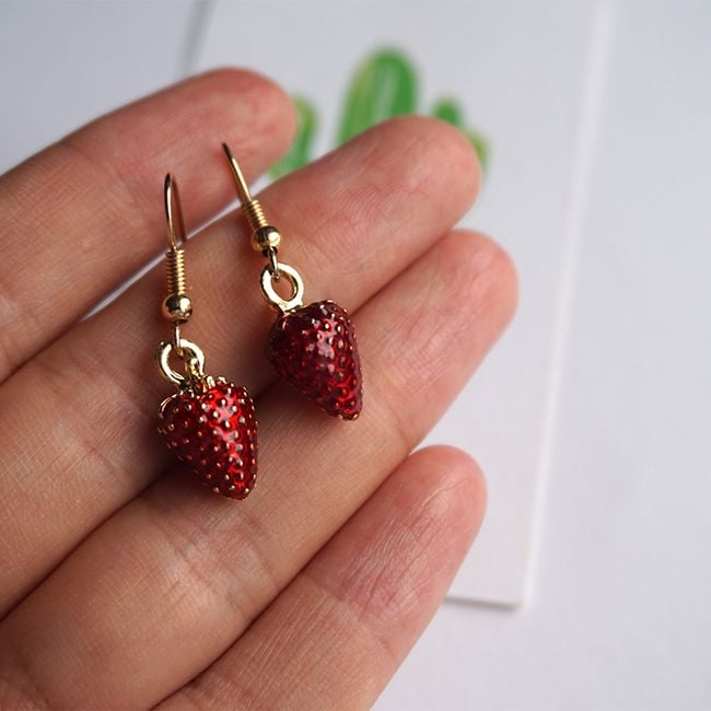Pendientes colgantes en forma de fresa - 2 versiones