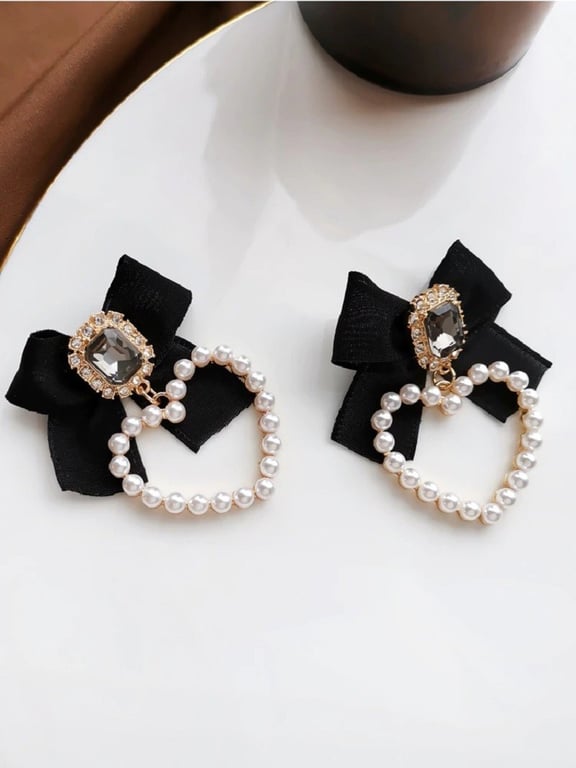 Material: metal de bisutería, imitación de perla, cristal, lazo