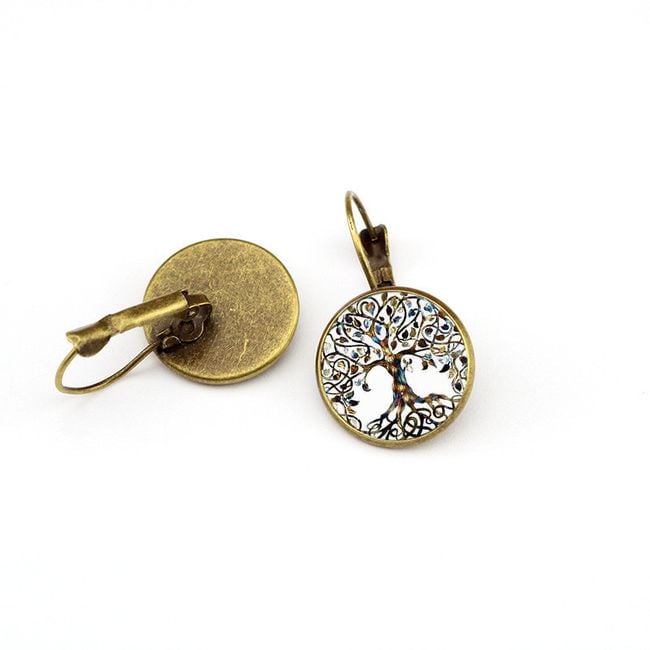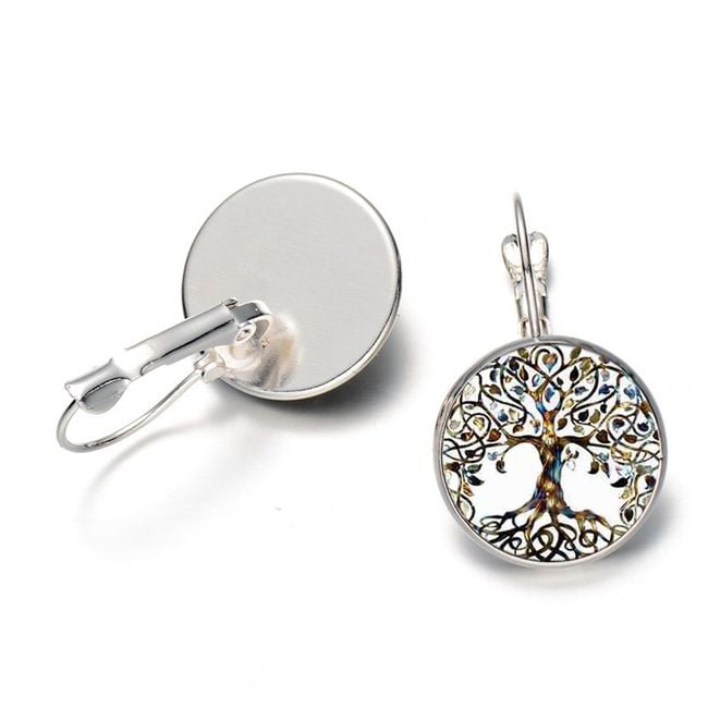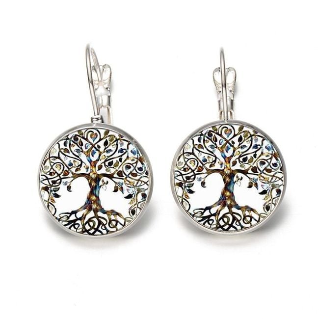 Hermosos pendientes con árboles de colores están disponibles en acabado dorado y plateado.