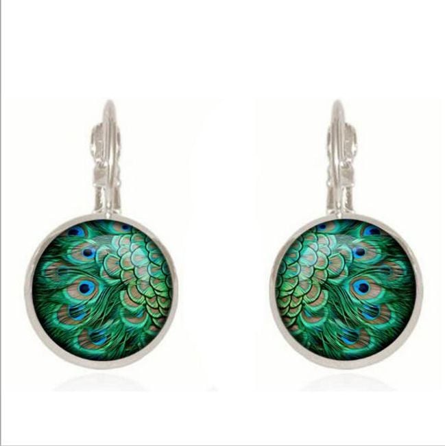 Los pendientes son adecuados para el uso diario y tienen un diseño de plumas de pavo real.