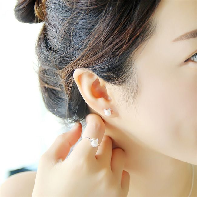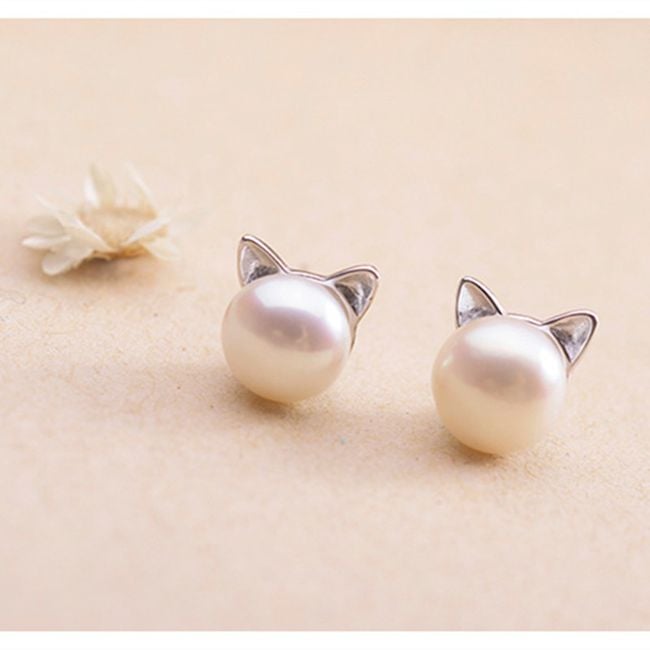 Los pendientes parecen dos perlas llamativas, adornadas con orejitas de gato, son muy discretos y, sin embargo, muy hermosos.