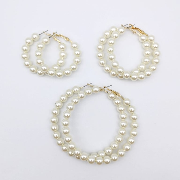 Pendientes de aro para mujer con perlas 3 pares
