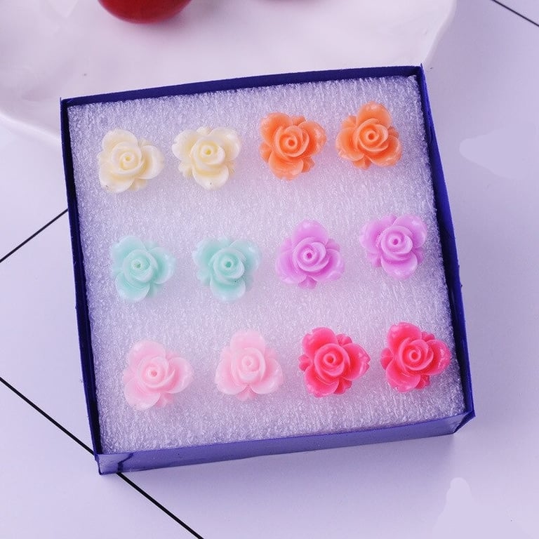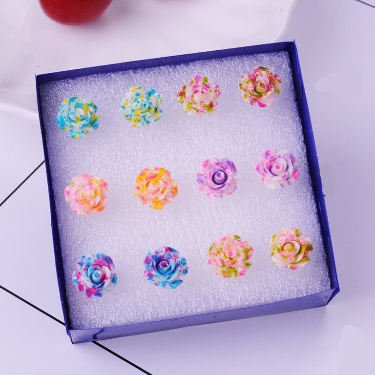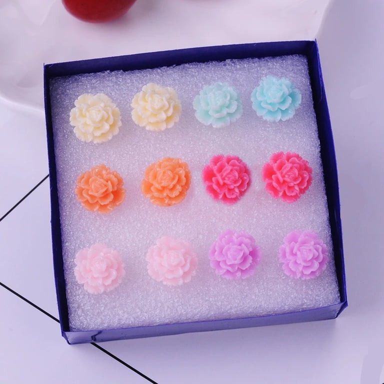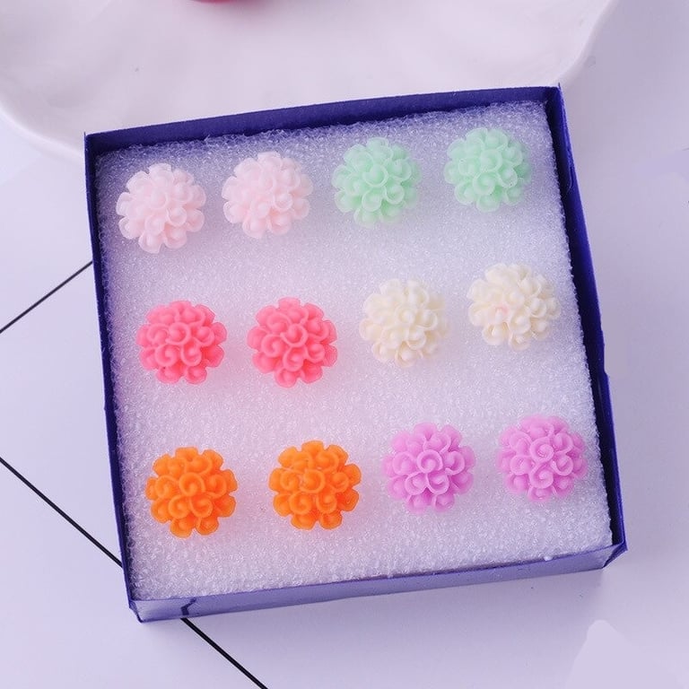 Pendientes de botón para mujer con flores