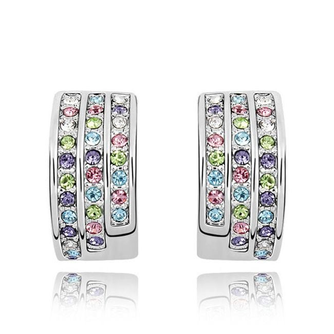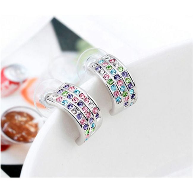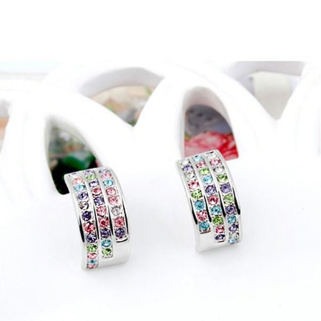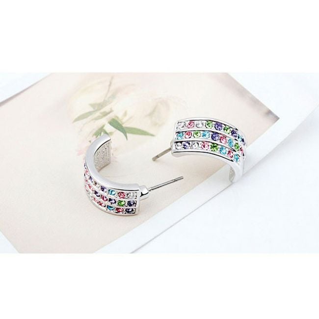 Pequeños y a la vez hermosos pendientes con pequeñas piedras de colores de vidrio tallado que no deberían faltar en tu joyero.